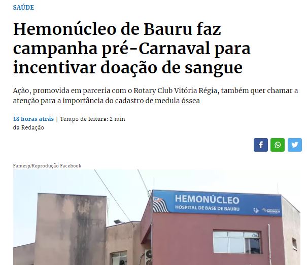 Jcnet: Hemonúcleo de Bauru faz campanha pré-Carnaval para incentivar doação de sangue