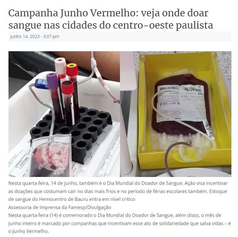 Jornal Floripa: Campanha Junho Vermelho: veja onde doar sangue nas cidades do centro-oeste paulista