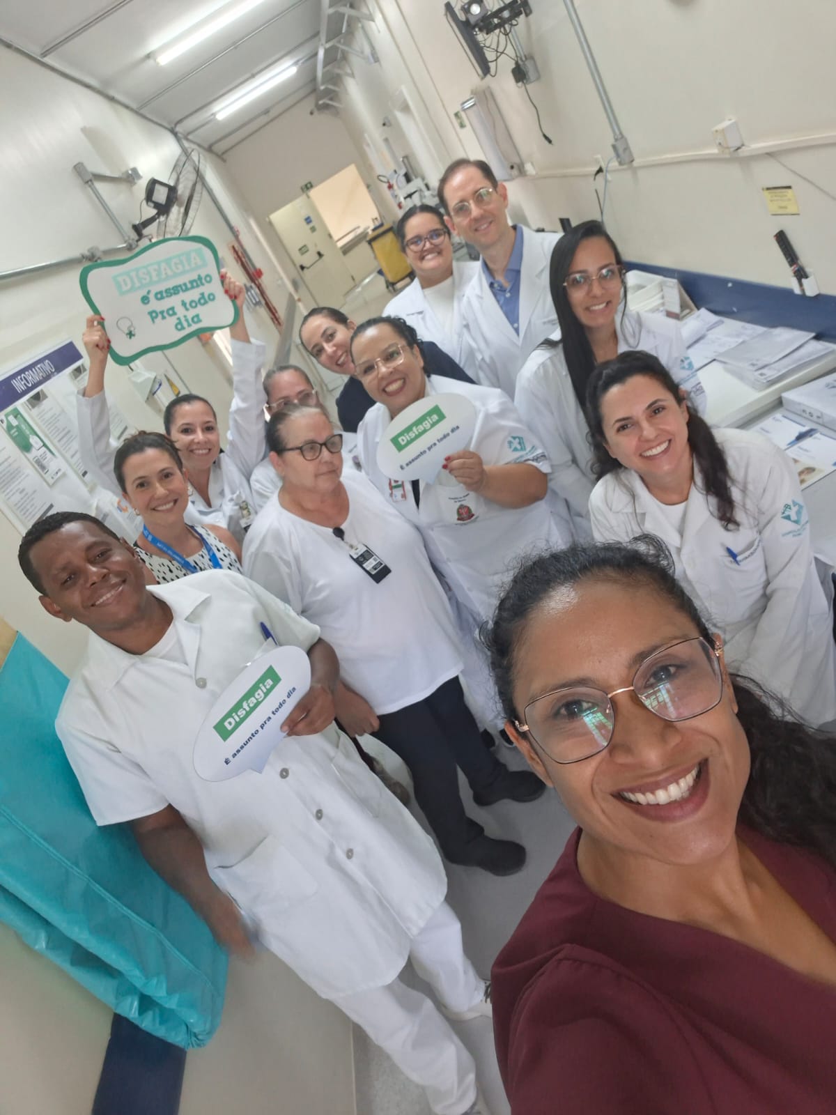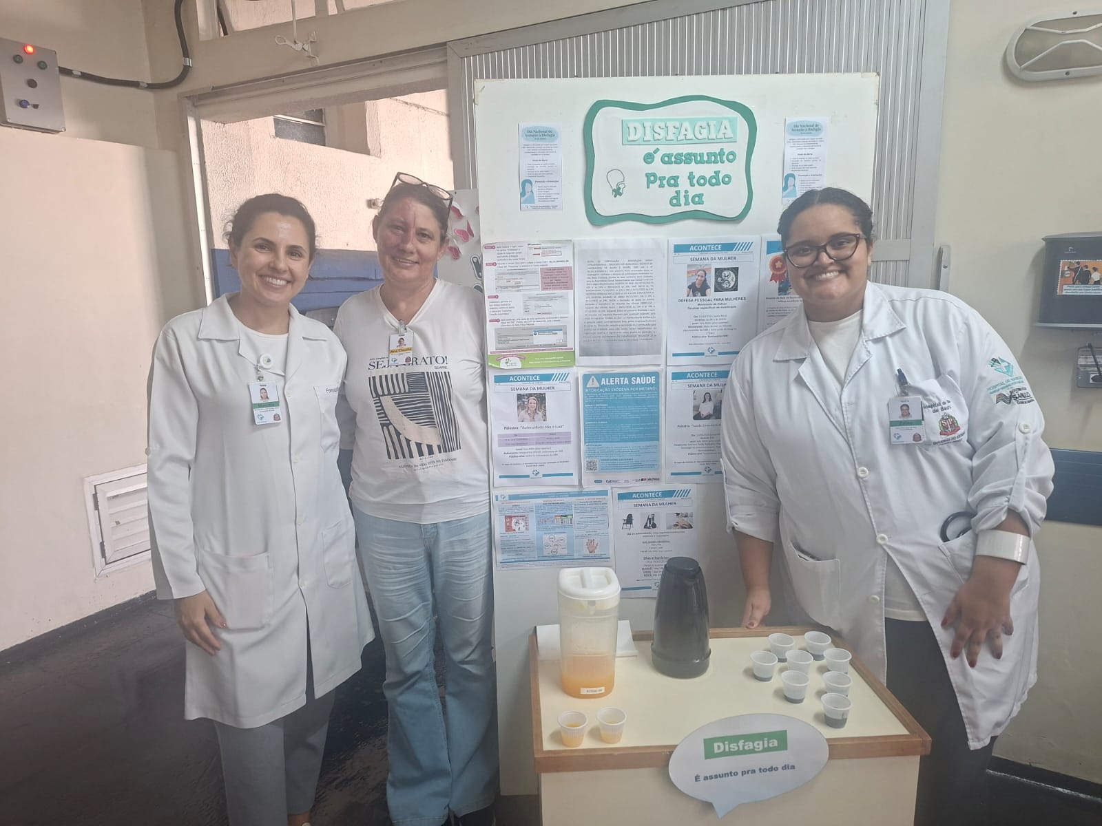 Em alusão ao Dia Nacional de Atenção à Disfagia, celebrado em 20 de março, o Hospital de Base de Bauru (HBB) realizou, no último dia 17 de março, uma ação educativa voltada aos colaboradores da instituição. A iniciativa foi conduzida pelas equipes de fonoaudiologia e nutrição, que percorreram todas as enfermarias levando informações e orientações sobre o tema.