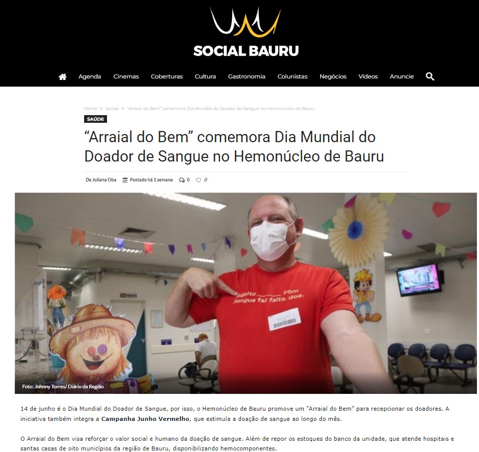 Social Bauru: Arraial do Bem comemora Dia Mundial do Doador de Sangue no Hemonúcleo de Bauru
